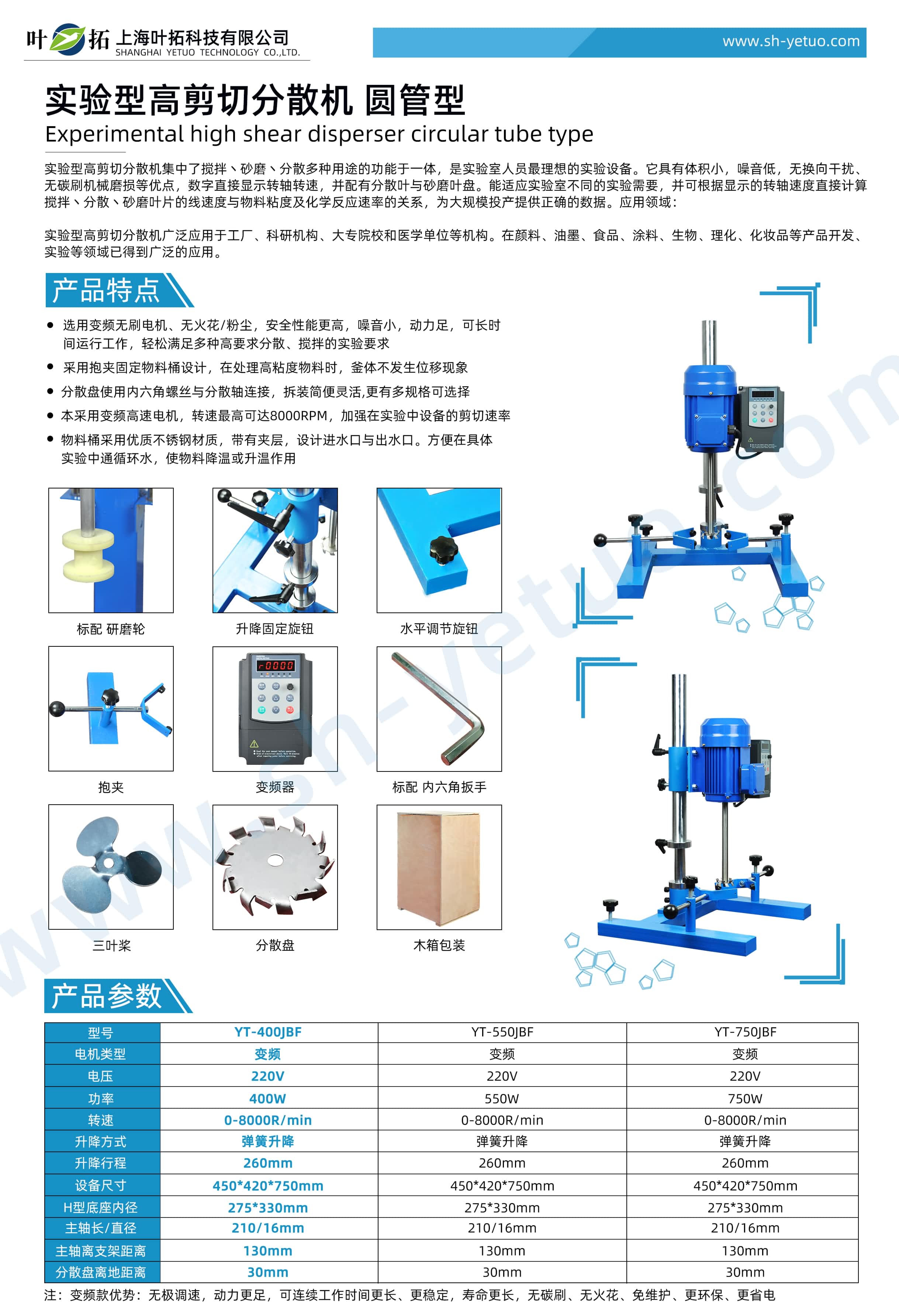 Product features of Yetuo YT-400JBF experimental circular tube disperser