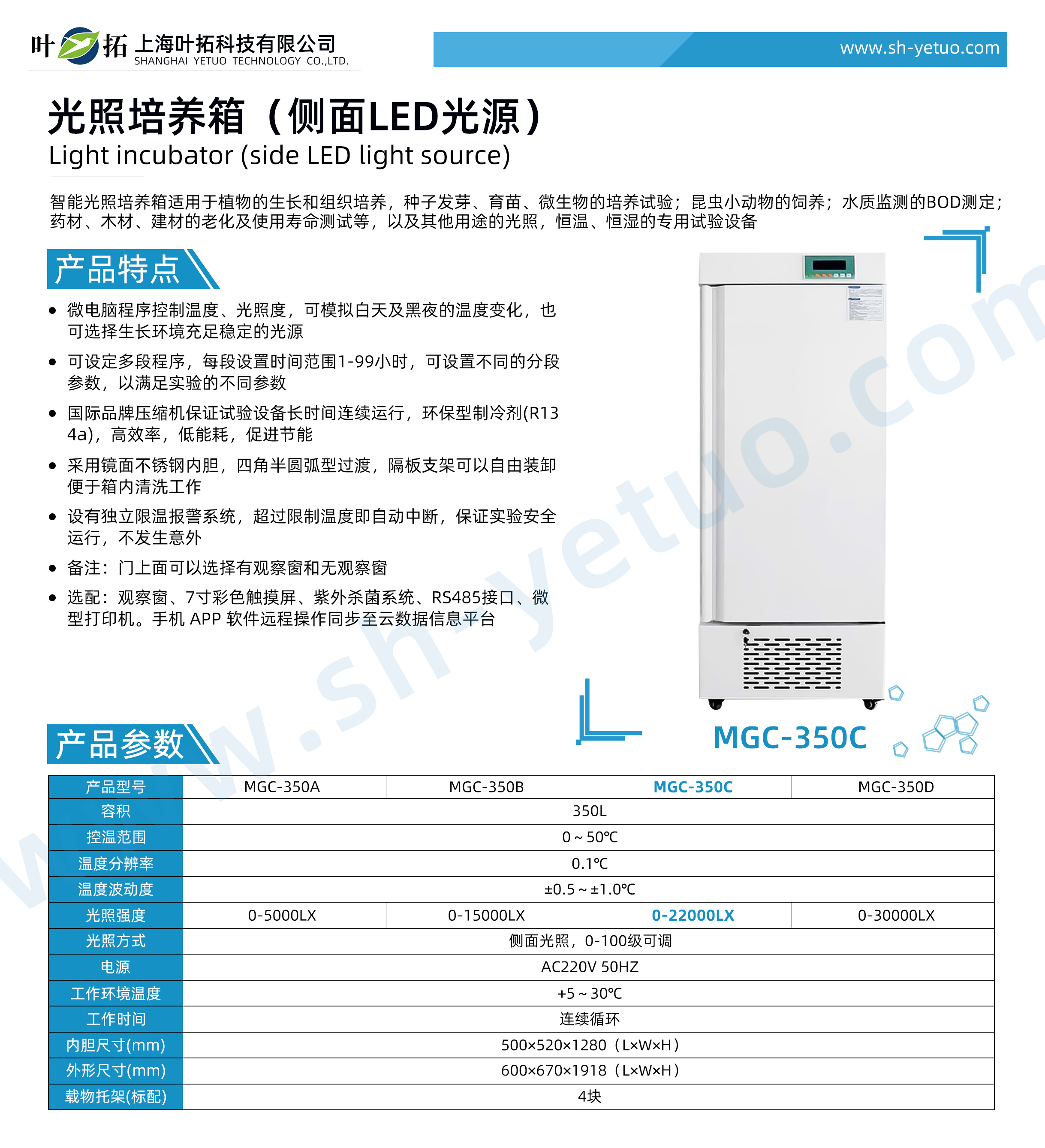 葉拓 MGC-350C 光照培養(yǎng)箱詳細(xì)參數(shù)