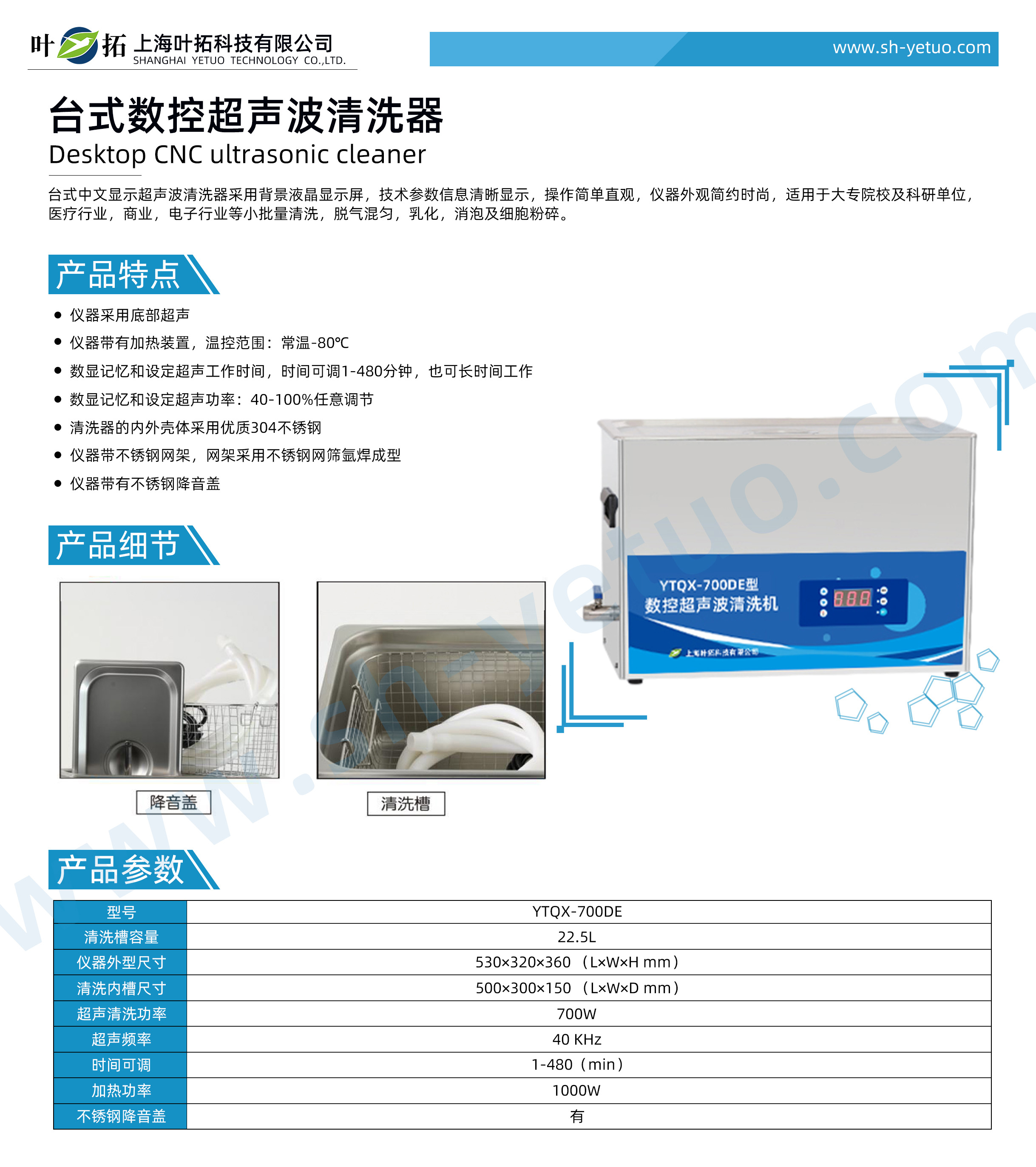 葉拓 YTQX-700DE 臺式數控超聲波清洗機產品特點: