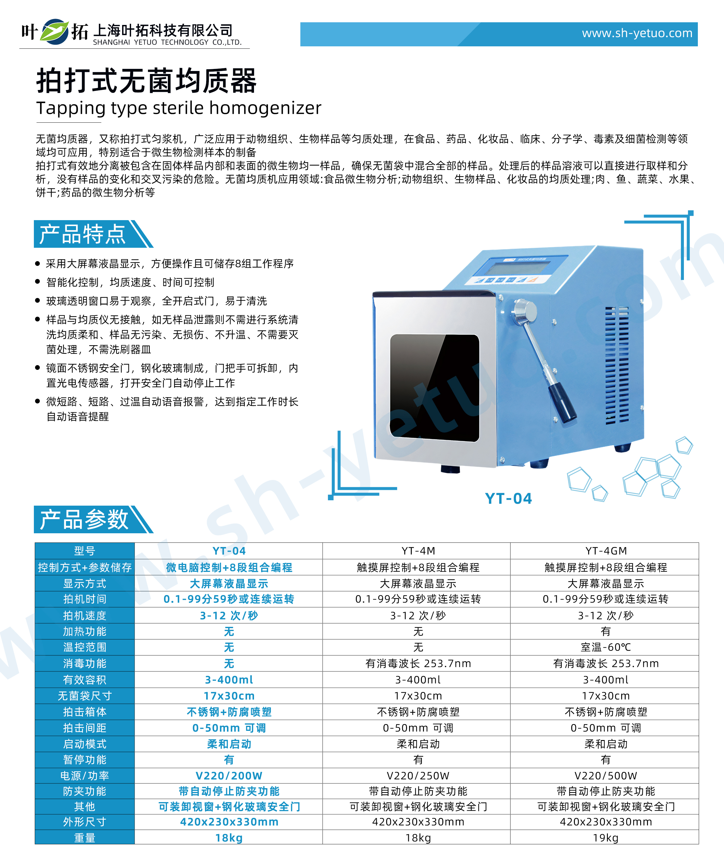 葉拓 YT-04 拍打式無菌均質器產品特點