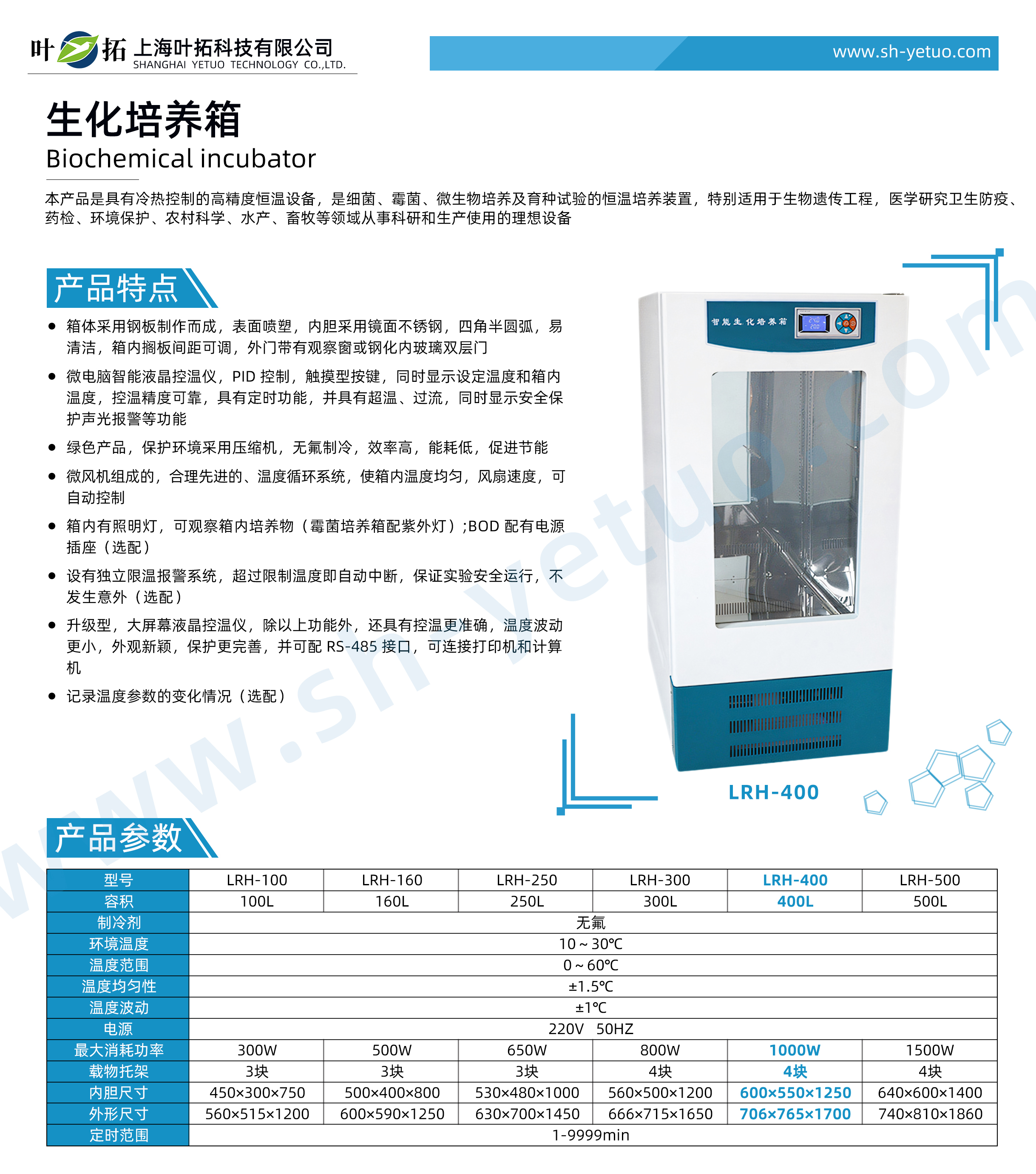 葉拓 LRH-400 生化培養(yǎng)箱詳細(xì)參數(shù)