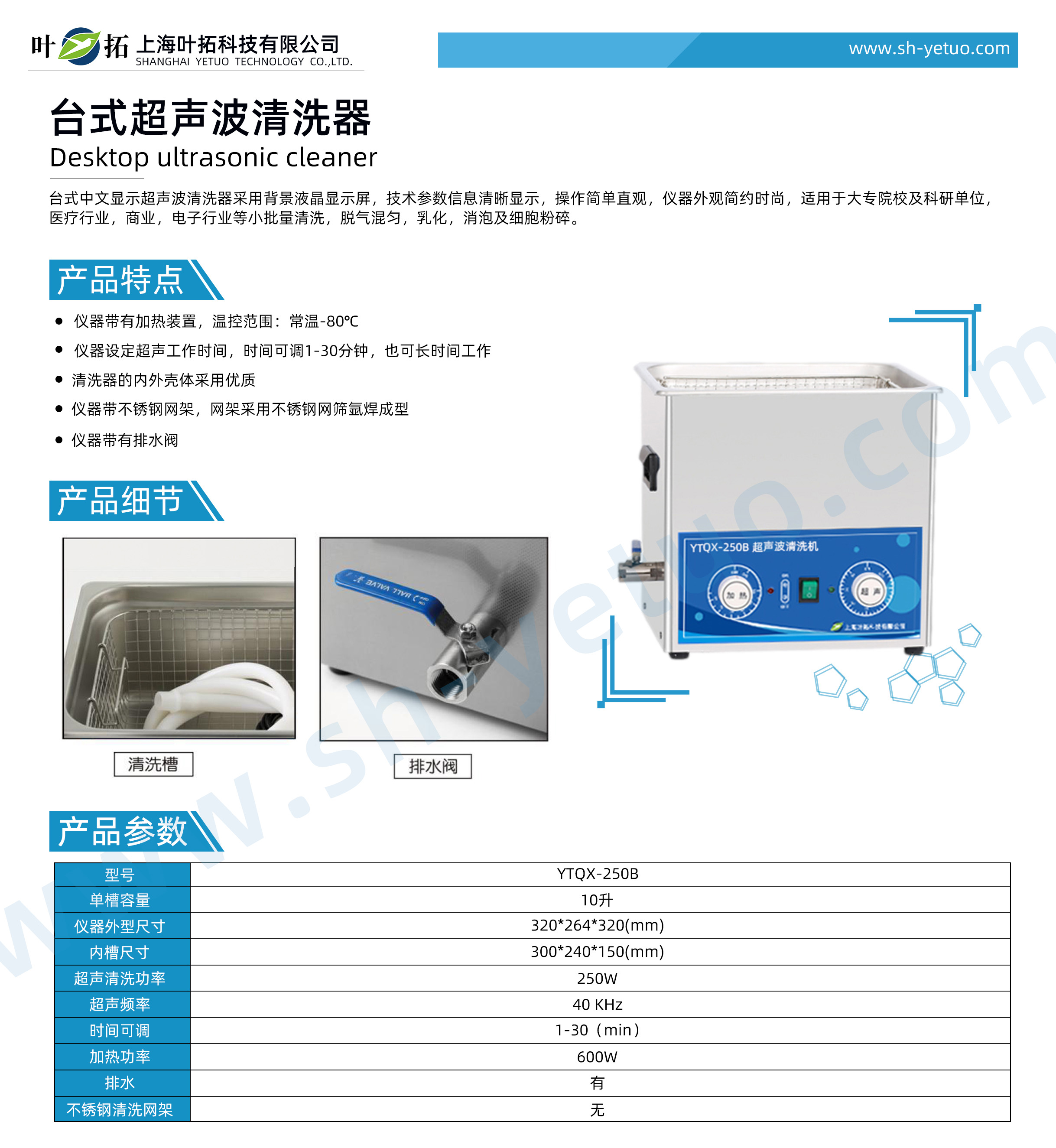 葉拓 YTQX-250B 臺(tái)式超聲波清洗機(jī)詳細(xì)參數(shù)