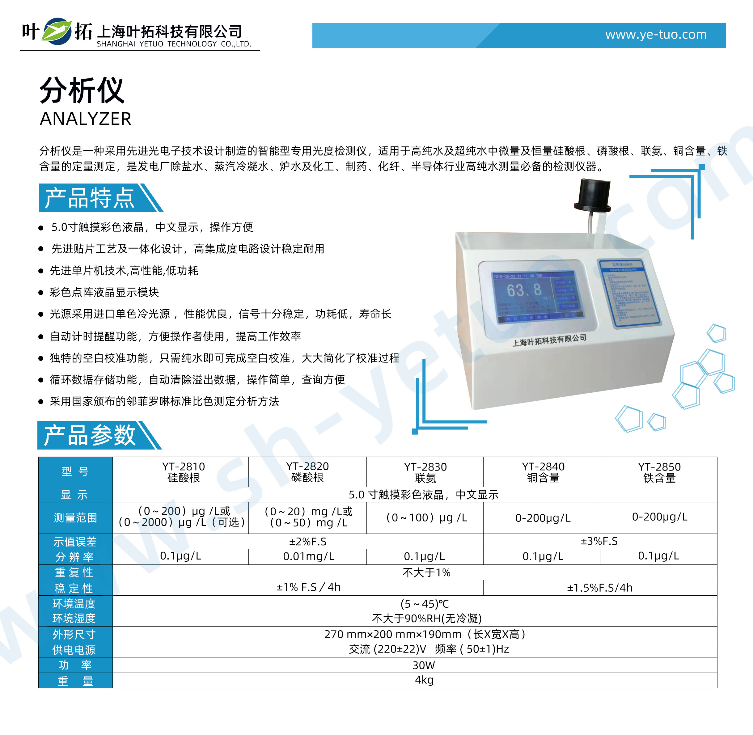 葉拓 YT-2810 硅酸根分析儀詳細參數