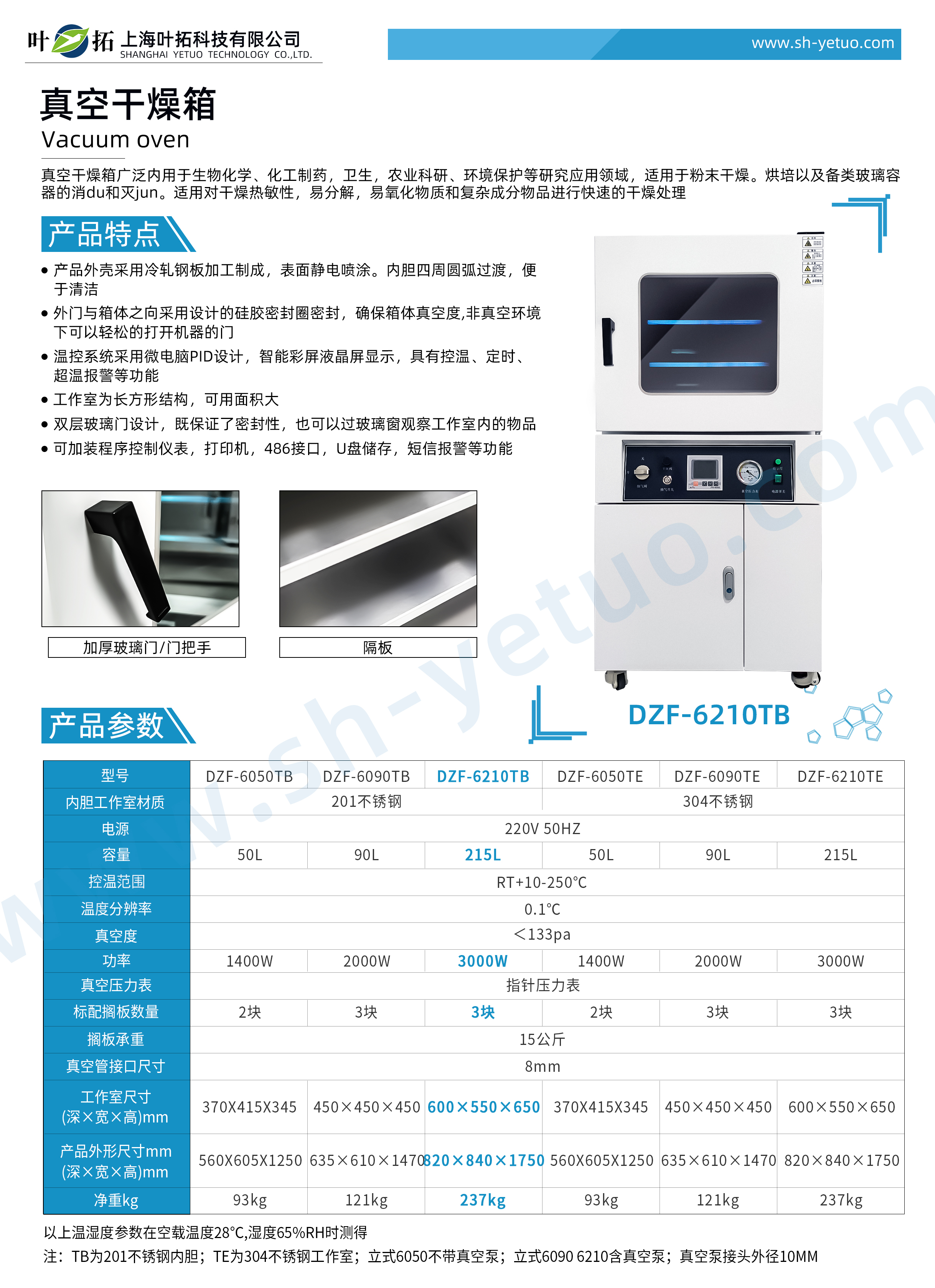 葉拓 DZF-6210TB 真空干燥箱詳細參數