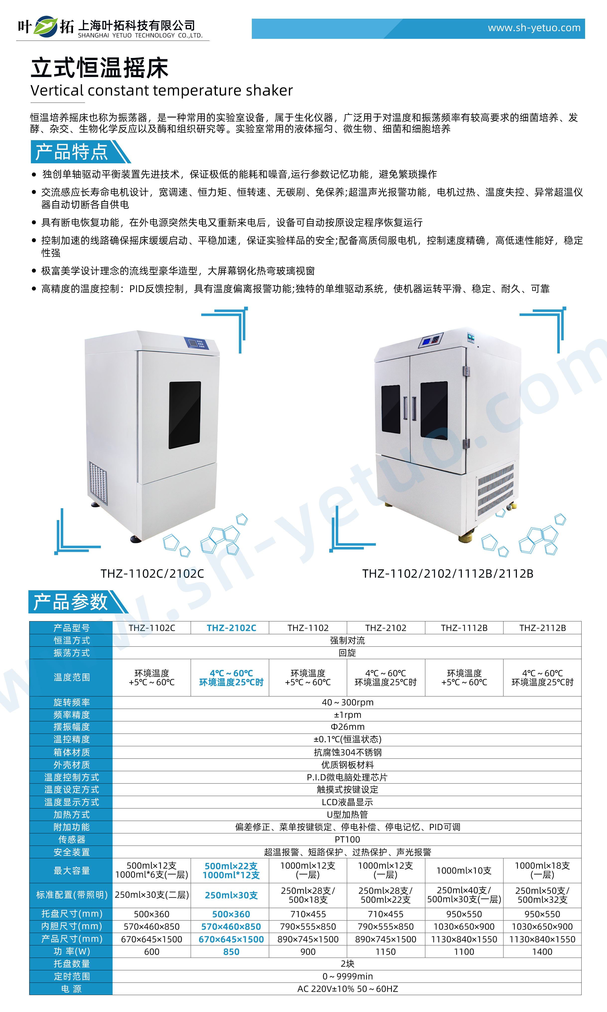 葉拓 THZ-2102C 立式恒溫搖床詳細參數