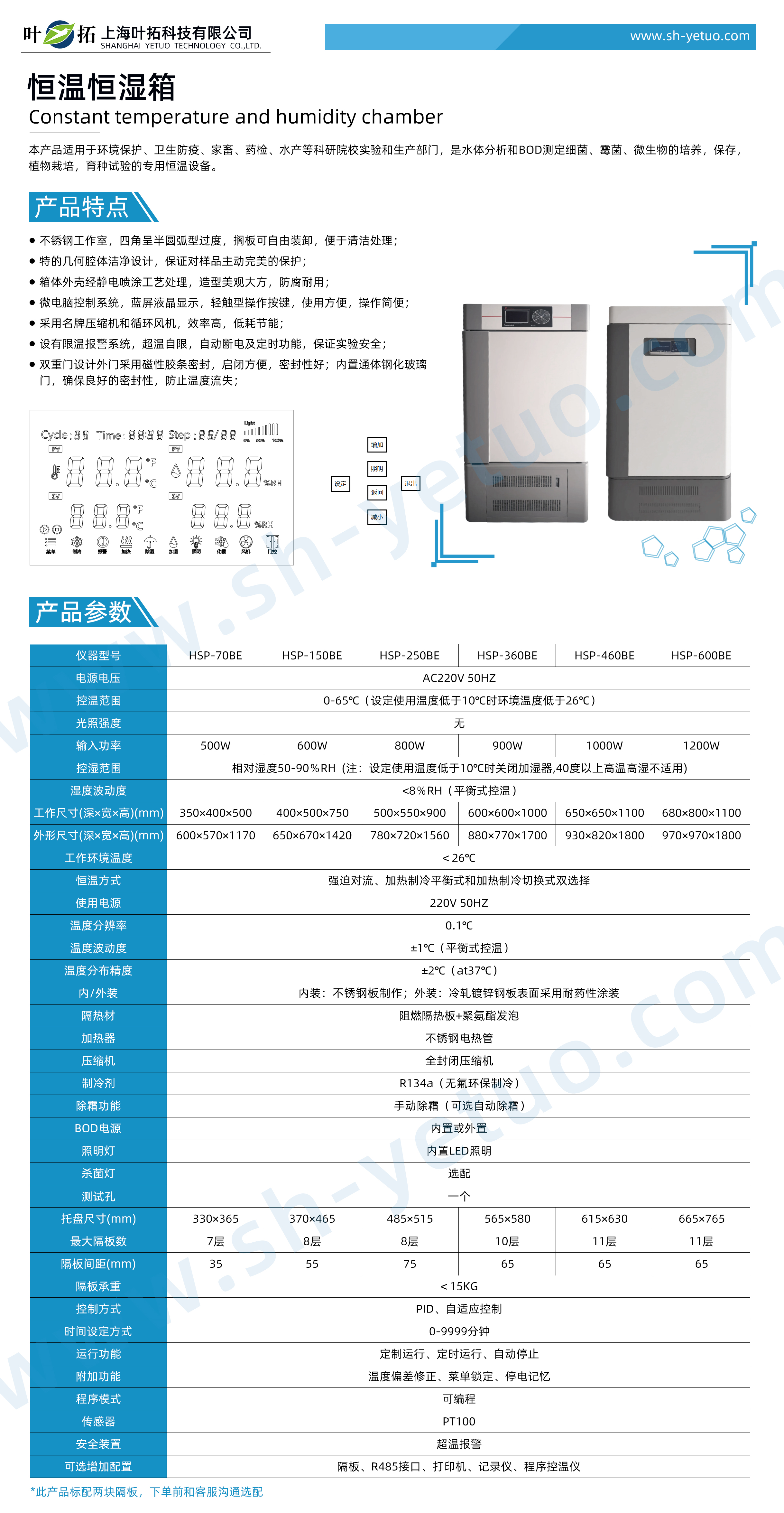 葉拓 HSP-250BE  恒溫恒濕箱詳細參數